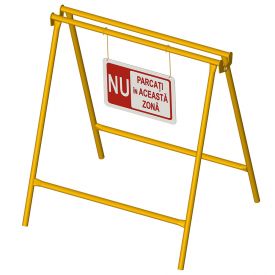 Set capra metalica mobila pentru rezervare loc de parcare model CPR-01 galben si placuta indicatoare 200x300 mm din PVC de 3 mm