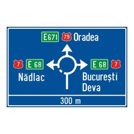Indicator de orientare F1 presemnalizarea directiilor la o intersectie de drumuri din afara localitatilor