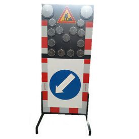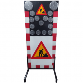 Panou indicator rutier pentru lucrari 1200x2500 mm, semnalizare luminoasa cu LED, montaj pe stalpi mobili si contravantuire