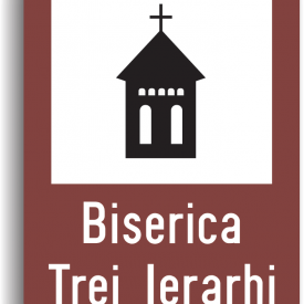 Indicator de informare turistica T4 biserica 650x500 mm folie reflectorizanta clasa 1 otel vopsit