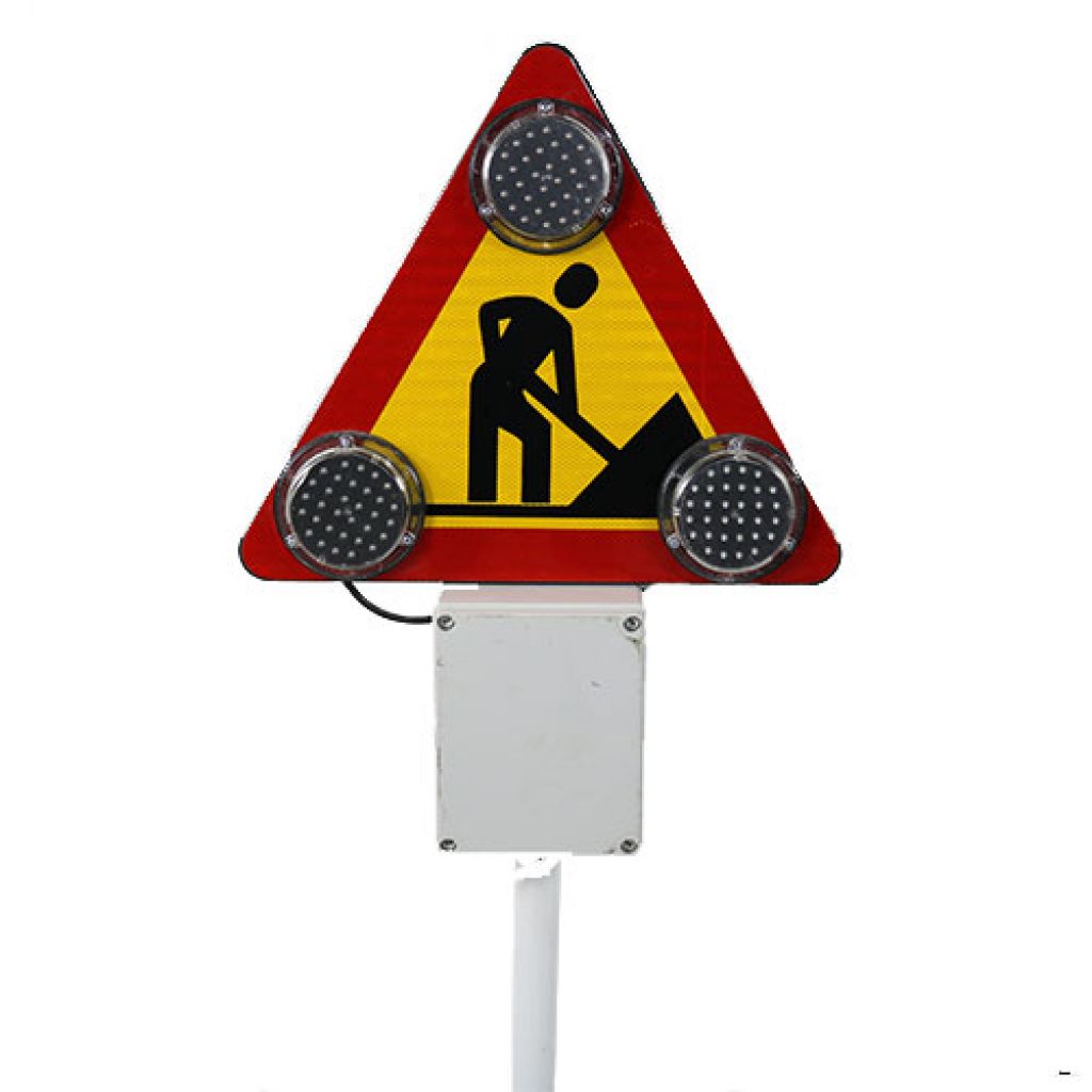 Indicatorul cu flash-uri Drum in lucru este folosit pentru atenționarea de la distantă asupra existenței unor zone cu lucrări sau accident. Acesta contine indicatorul rutier "Lucrari" U8, care este un triunghi cu o latura de 700mm.