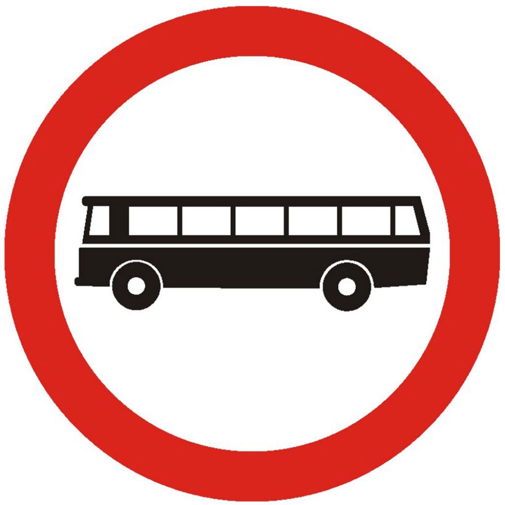 Indicator de interzicere sau restrictie C9 accesul interzis autobuzelor 600 mm folie reflectorizanta clasa 1 otel vopsit se monteaza la intrarea pe drumurile publice pe care accesul autobuzelor este interzis.
