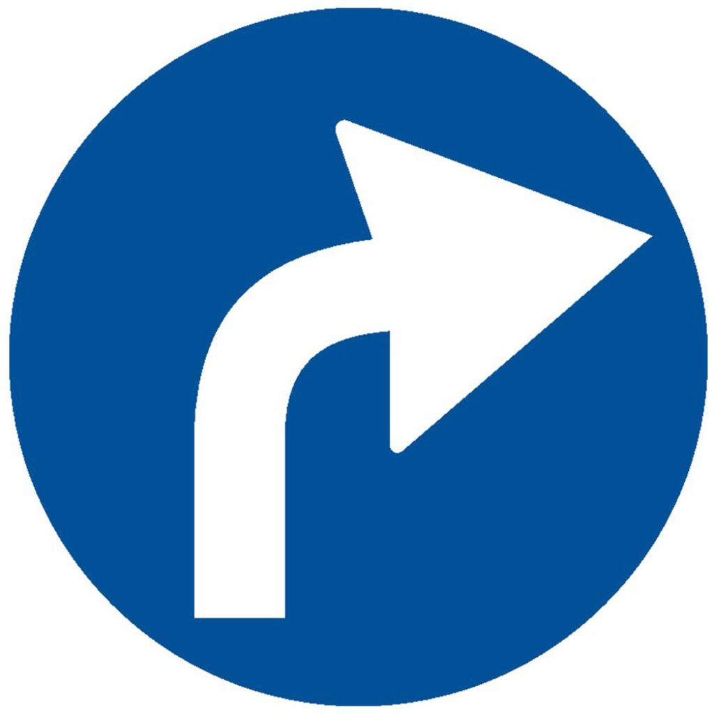 Indicator de obligare D3 obligatoriu la dreapta 600 mm folie reflectorizanta clasa 1 otel vopsit se amplaseaza inaintea intrarii intr-o intersectie, obligand conducatorul auto sa vireze pe directia indicata de sageata, dupa ocolirea indicatorului. Zona de actiune a acestui indicator o constituie intersectia inaintea careia este instalat.