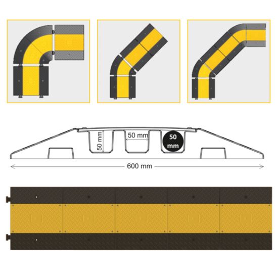 Datorita utilizarii sale practice si a canalelor de cablu, ofera solutii excelente in fabrici, targuri, congrese si evenimente temporare. Este rezistent la traficul abraziv al vehiculelor datorita tehnicilor utilizate in productia de canale de cablu . Produsele sunt produse rezistente la conditiile meteorologice naturale (-20 ° + 60 °). Are tonuri de avertizare universale cu vizibilitate ridicata. Are un capac galben. Este usor de instalat si transportat. Are o structura modulara. Poate fi extins prin adaugarea unul langa altul. Umflaturile conductelor nu sunt conductive.