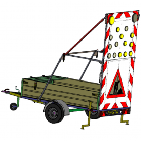 Remorca semnalizare si dirijare trafic cu panou pliabil 1400x2500 mm si 16 lampi LED